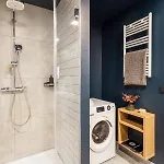 - ❓What bathroom amenities can we expect to find at this central Ipartment Darmstadt apartment?This central Ipartment Darmstadt apartment features bathrooms complete with a hair dryer.